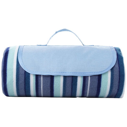 Wodoodporny koc piknikowy Riviera. Koc powlekany nieprzemakalną warstwą ochronną na spodzie, świetny na piknik, łatwy do przenoszenia dzięki wygodnej rączce. Wymiary koca: 145 x 130 cm. Polar poliestrowy.