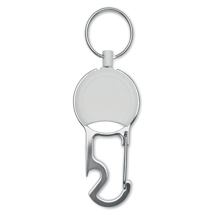 Wysuwany identyfikator z ABS z klipsem, kółkiem na klucze i otwieraczem do butelek.