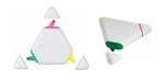 Zakreślacz w formie trójkąta. Wygodny i praktyczny. Posiada trzy kolory zakreślacza: żółty, zielony i różowy. Logo nanosimy na powierzchnię zakreślacza metodą tampodruku.