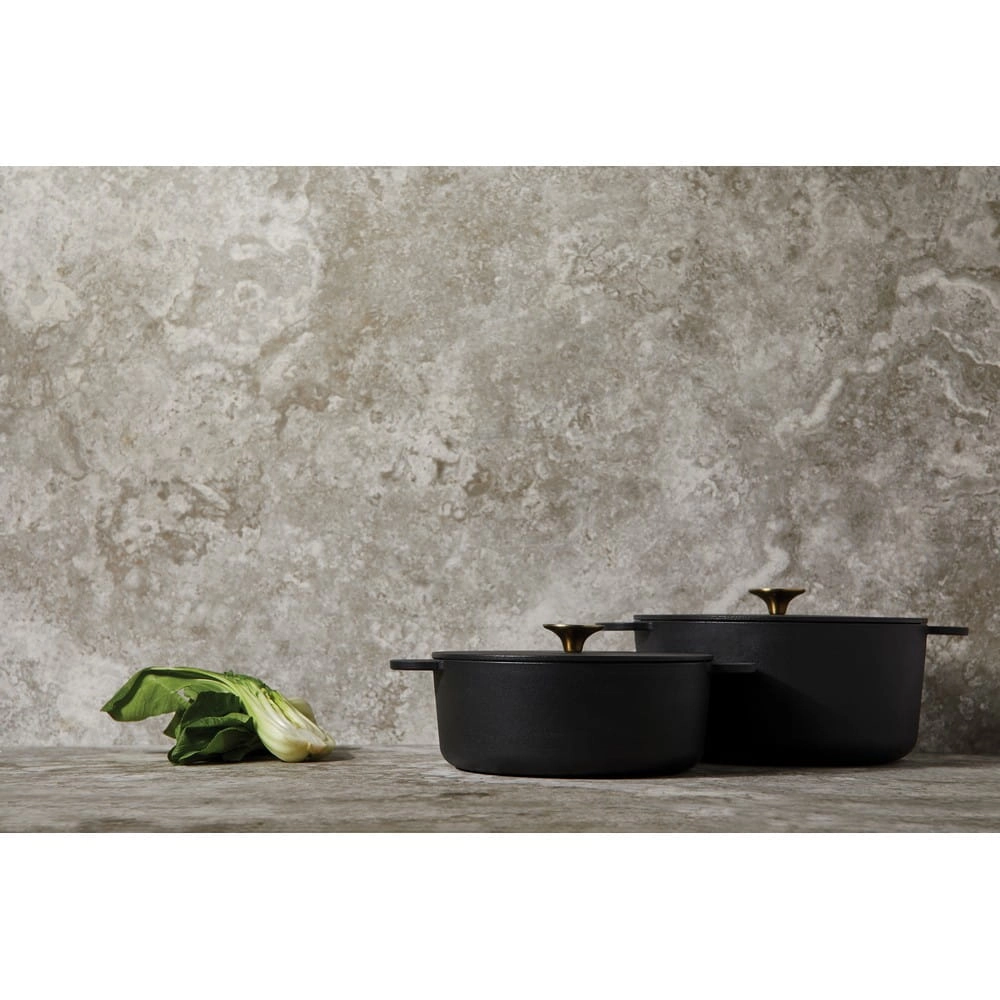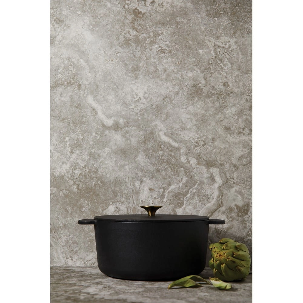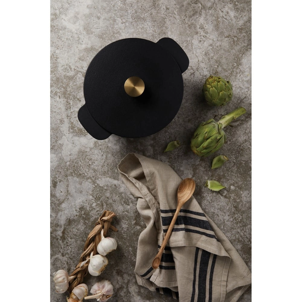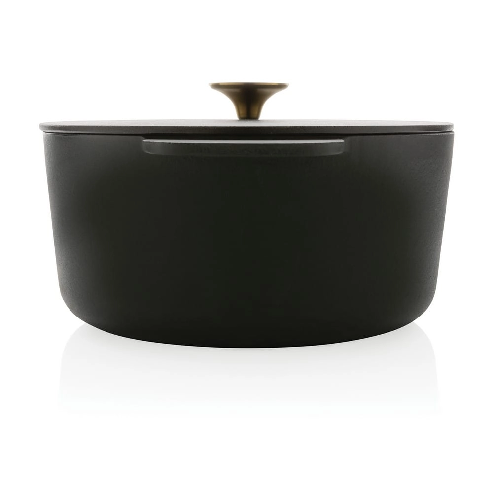 Garnek emaliowany 5,2 L, wykonany z żeliwa dzięki któremu dłużej utrzymuje temperaturę umożliwiając równomierne pieczenie, można używać w piekarniku, na płycie indukcyjnej i na grillu, średnica 26 cm, zapakowany w pudełko z papieru kraftowego z certyfikatem FSC®
