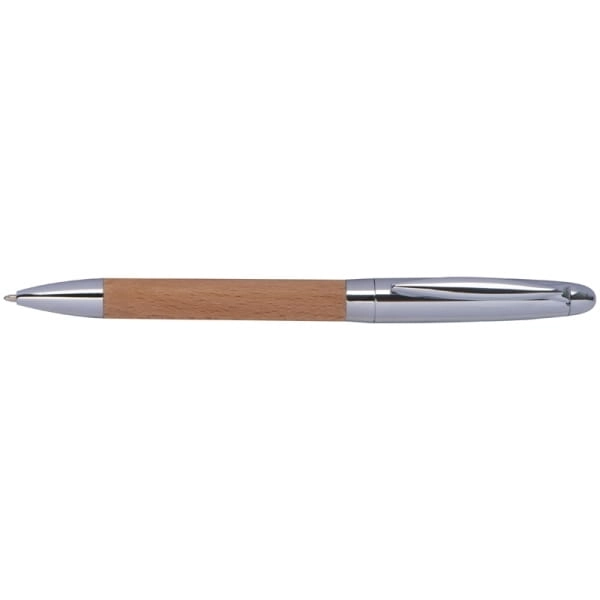 Zestaw składający się z długopisu i breloka. Oba gadżety wykonane są z drewna i posiadają metalowe elementy.