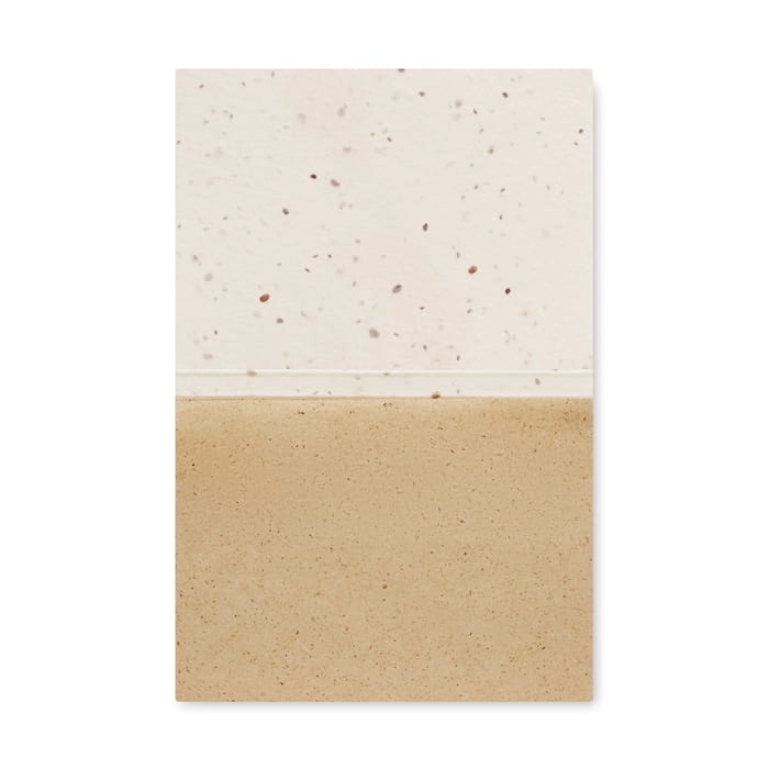 Zestaw kartek w miękkiej okładce papierowej z nasionami, 50 samoprzylepnych kartek i 3 kolorowe markery. Zawiera nasiona kwiatów łąkowych, które rosną po posadzeniu w glebie.