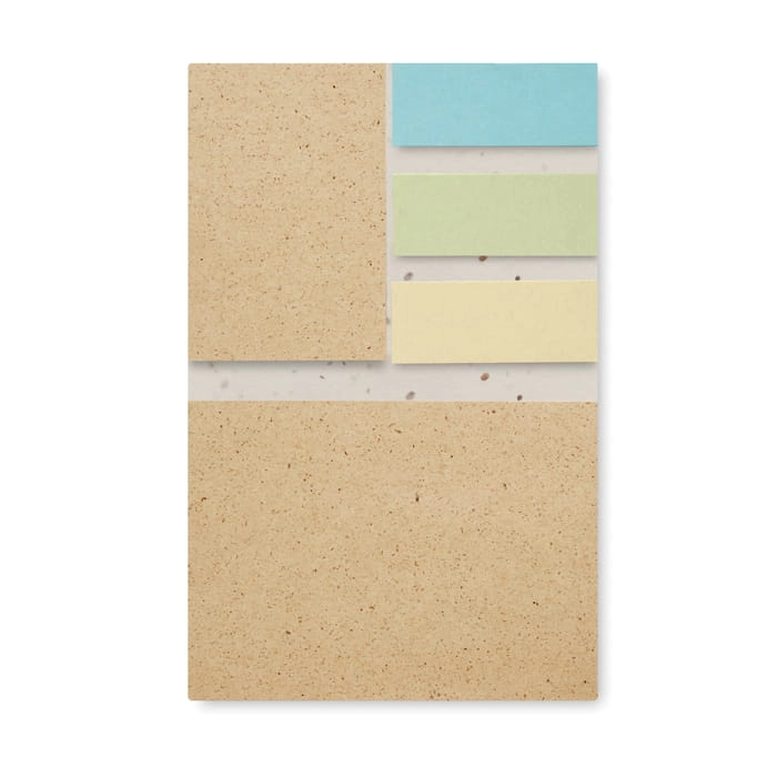 Zestaw kartek w miękkiej okładce papierowej z nasionami, 25 samoprzylepnych kartek i 3 kolorowe markery. Zawiera nasiona kwiatów łąkowych, które rosną po posadzeniu w glebie.