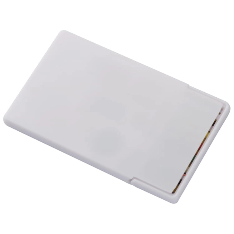 Podróżny zestaw do małych poprawek krawieckich. Nożyczki, igły, nici, agrafki, nawlekarka do nici i zapasowe guziki zostały umieszczone w pudełku w kształcie karty kredytowej.