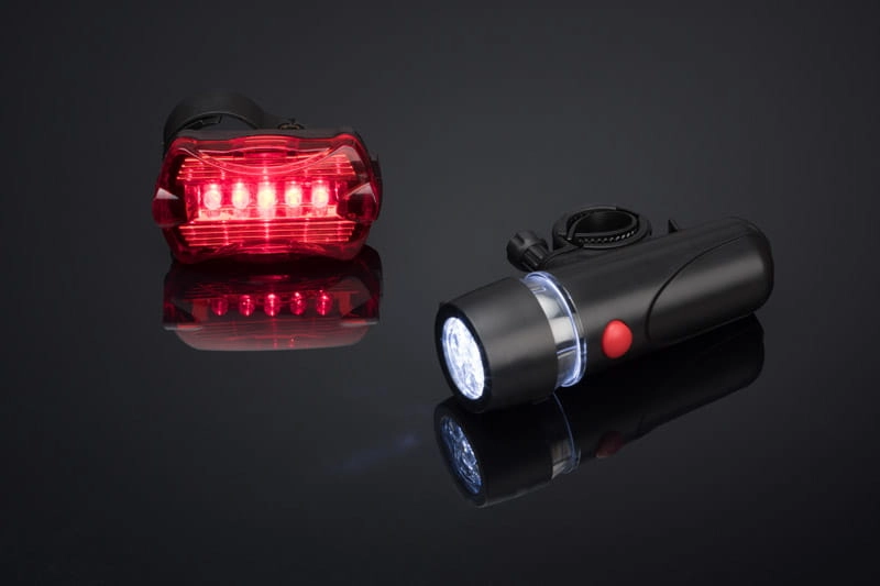 AZER to zestaw lampek rowerowych o ekonomicznym źródle światła LED. Mocne światło przednie i zapewniające widoczność z kilkuset metrów światło tylne sprawią, że bez obaw będziesz jeździć o każdej porze dnia i nocy. Charakteryzują się bardzo łatwym montażem. Lampka przednia posiada 5 białych diod LED i 3 tryby świecenia: jeden ciągły i dwa migające. Natomiast lampka tylna posiada 5 czerwonych diod LED i 7 trybów świecenia: jeden ciągły i 6 migających.