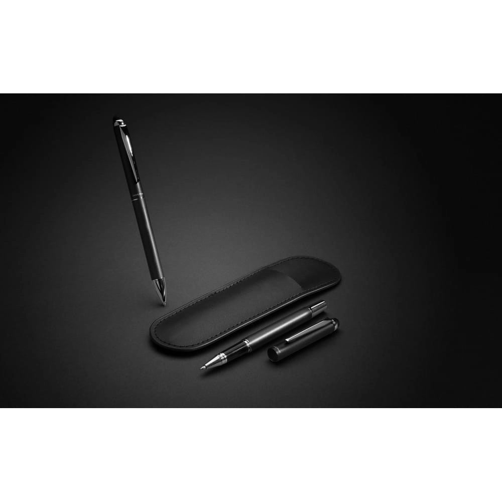 Ekskluzywny zestaw piśmienny, długopis i pióro kulkowe, długopis posiada wkład Dokumental® w kolorze niebieskim, długość pisania ok. 1200 m, pióro kulkowe posiada wkład Dokumental® w kolorze niebieskim, długość pisania ok. 400 m, w ozdobnym etui z PU i czarnym pudełku podarunkowym