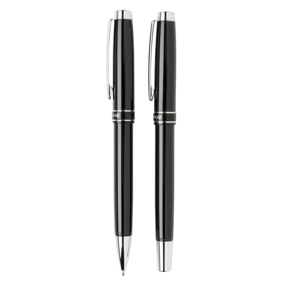 Kolekcja Swiss Peak Heritage to kwintesencja nowoczesnej elegancji. Ekskluzywny zestaw piśmienny, długopis i pióro kulkowe wykonane z mosiądzu, w pudełku podarunkowym Swiss Peak. Oba posiadają metalowy wkład (długość pisania ok. 1200m) z niemieckim tuszem.