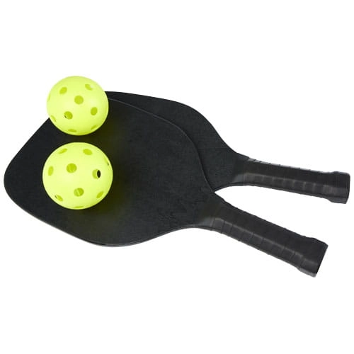 Ten zestaw rakietek wykonany z drewna bukowego zapewnia mnóstwo zabawy i ruchu dla dwojga na plaży, w parku lub w ogrodzie. Rakietki mają wymiary 40 x 20 x 0,7 cm i są pomalowane na czarny kolor, co zapewnia dużą powierzchnię do nadruku dowolnego logo. Uchwyty są oklejone taśmą PU, co zapewnia maksymalną przyczepność podczas intensywnej gry. Zestaw uzupełniają 2 piłeczki wykonane z tworzywa PP, zapakowane w siatkowe etui z poliestru o wymiarach 45 x 26 cm.