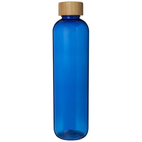 Butelka na wodę wielokrotnego użytku wykonana z tworzyw sztucznych pochodzących, ze stylową bambusową pokrywką. Jednościenna butelka niezawierająca BPA, przetestowana i zatwierdzona zgodnie z niemieckimi przepisami dotyczącymi bezpieczeństwa żywności (LFGB). Przetestowana i zatwierdzona pod kątem zawartości ftalanów zgodnie z przepisami REACH. Bambus pochodzi ze zrównoważonych, ekologicznie i społecznie odpowiedzialnych źródeł. Pojemność 950 ml. Zalecane mycie ręczne. Zapakowana w pudełko upominkowe wykonane z kartonu z recyklingu.