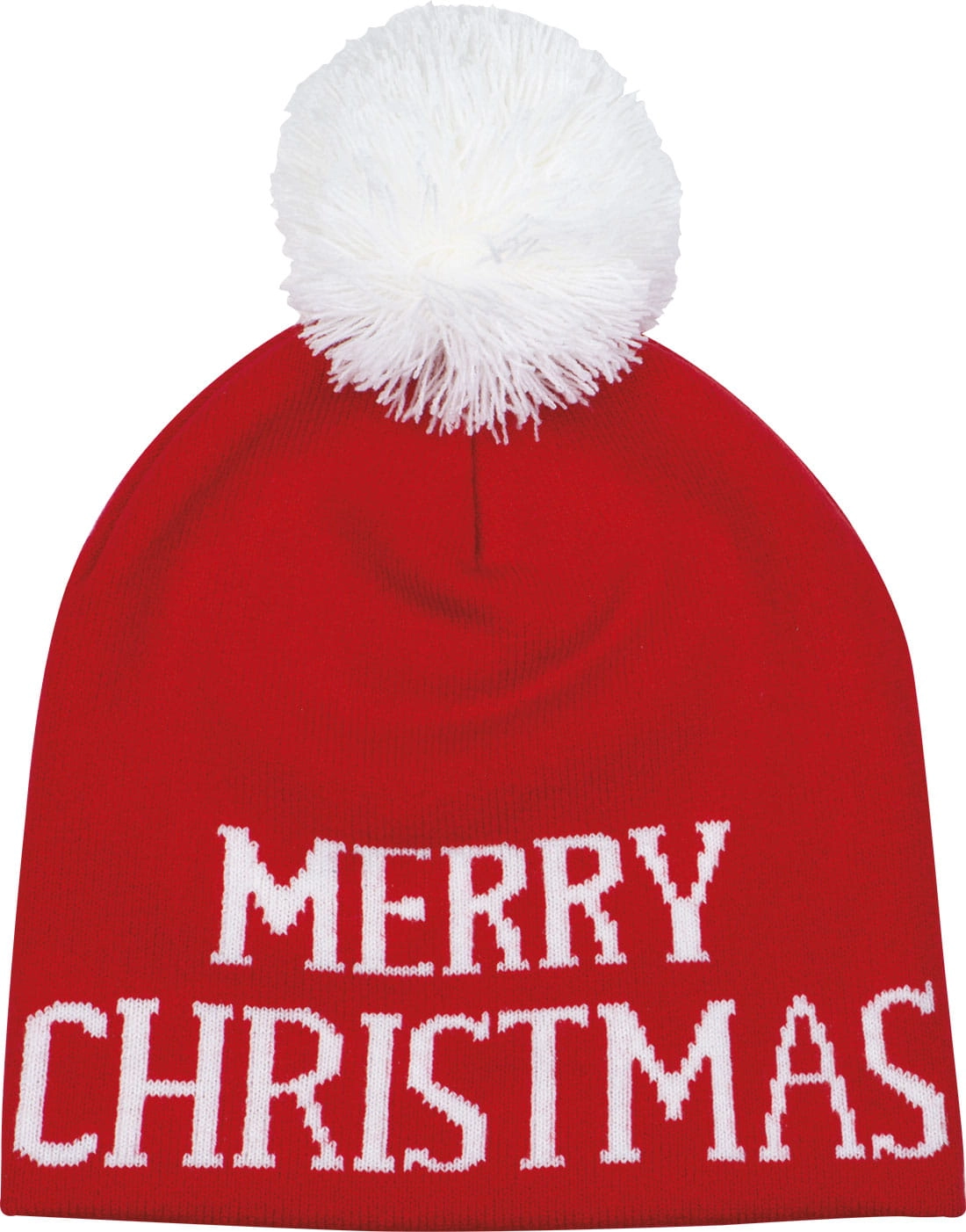 Akrylowa czapka ze świątecznym napisem i pomponem.