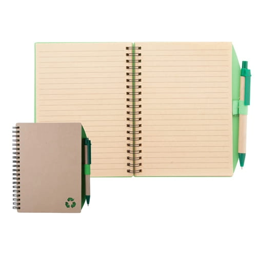 Notatnik na spirali z 80 kartkami w linie, w zestawie długopis ekologiczny.