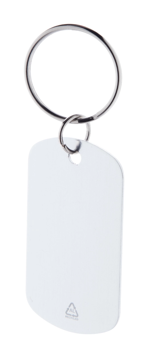 Aluminiowy brelok z recyklingu z metalowym kółkiem.