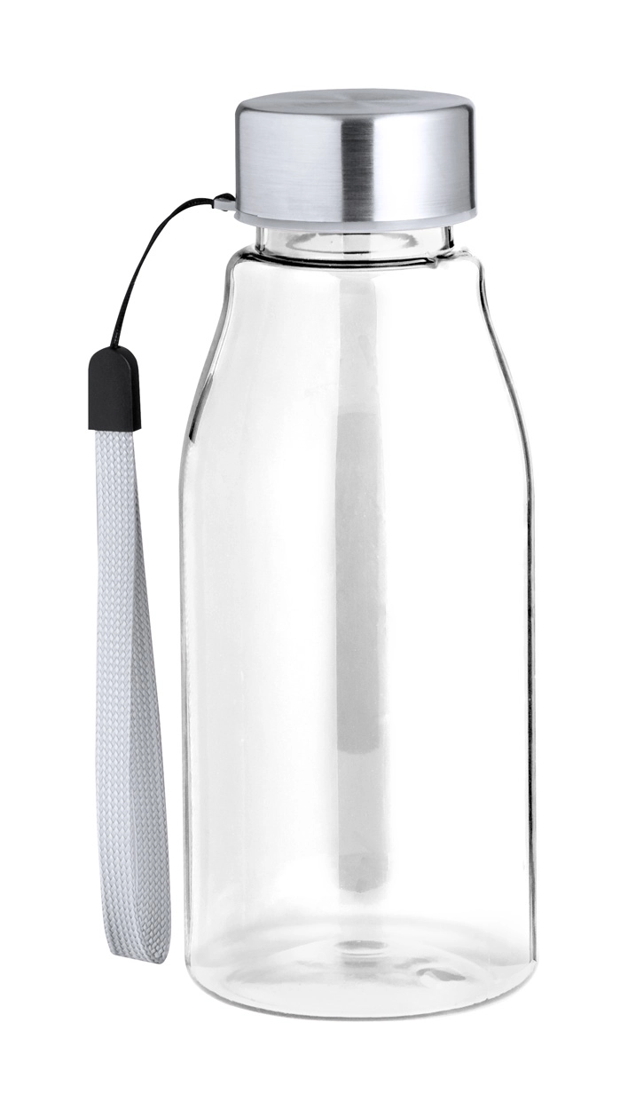 Butelka RPET z nakrętką ze stali nierdzewnej i paskiem do noszenia, 350 ml. Nie zawiera BPA. Nie nadaje się do napojów gazowanych.