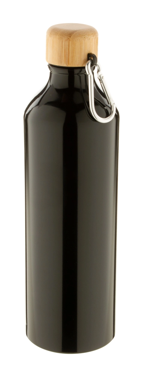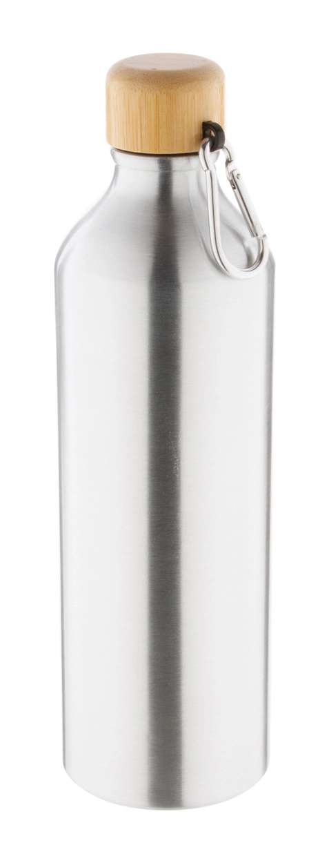 Aluminiowa butelka sportowa z bambusową pokrywką i karabińczykiem, 800 ml.