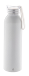 Aluminiowa butelka sportowa z recyklingu z kolorową pokrywką i silikonowym paskiem do noszenia, 600 ml.