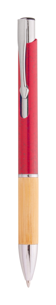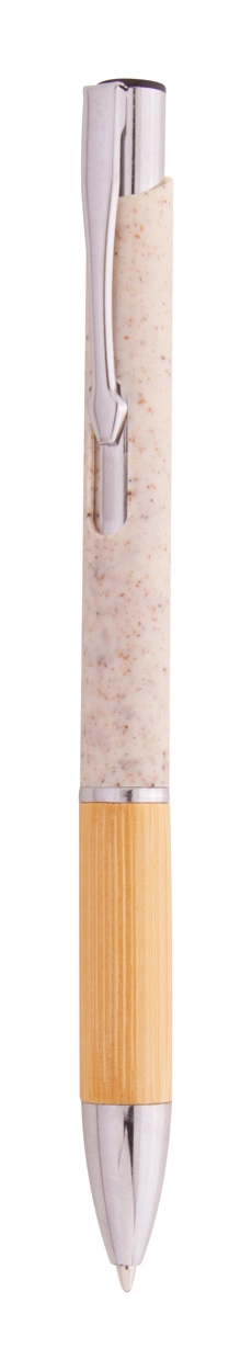Ekologiczny plastikowy długopis ze słomy pszenicznej z bambusowym uchwytem i metalowymi elementami. Z niebieskim wkładem.