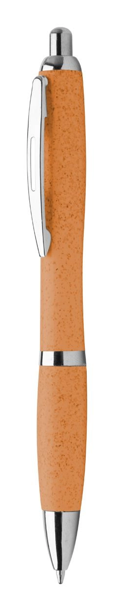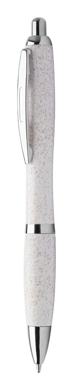 Długopis z chromowanymi elementami wykonany z materiałów z recyklingu: kombinacji pszenicy i PP. Niebieski wkład.