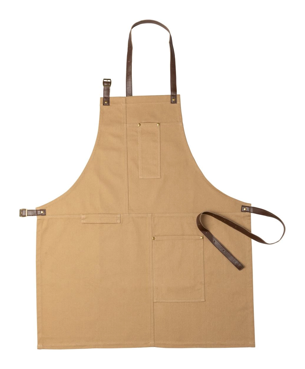 Bawełniany fartuch z kieszenią na froncie i regulowanymi paskami ze skóry PU. 340 g/m2.