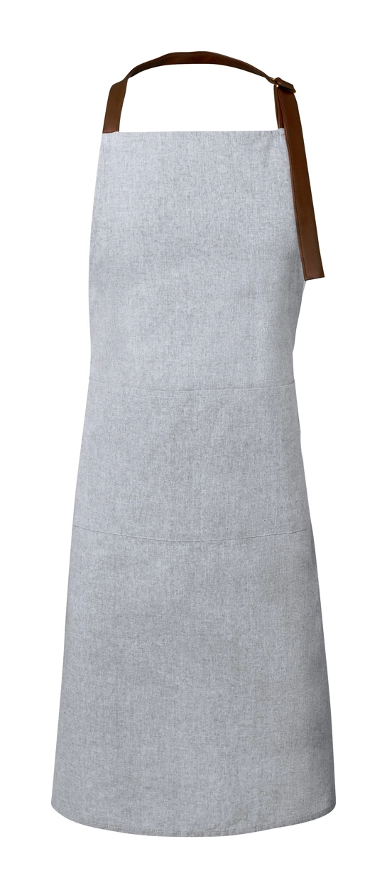 Poliestrowy fartuch RPET z przednimi kieszeniami i regulowanymi paskami.