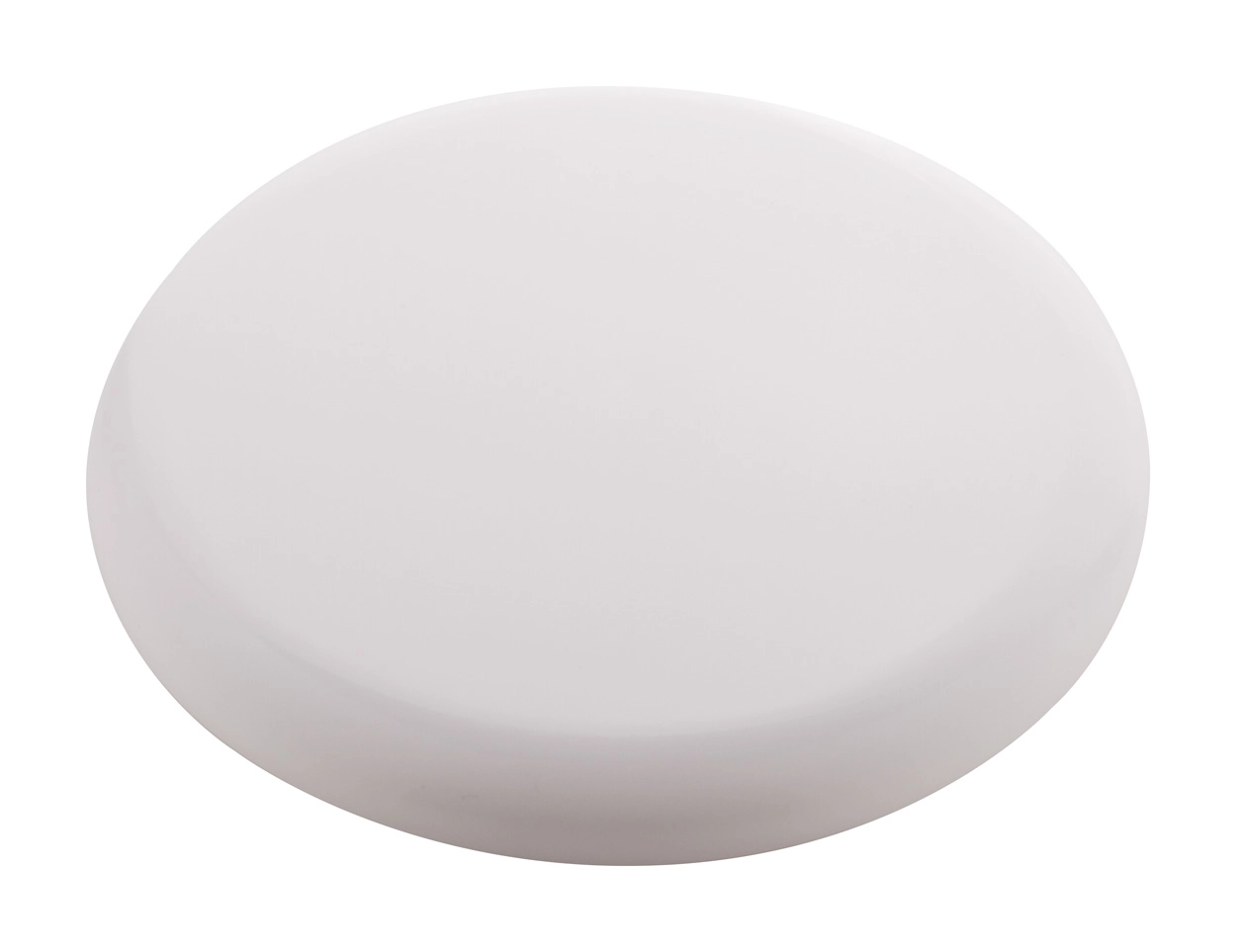 Frisbee z plastiku z recyklingu z płaską powierzchnią pod nadruk.