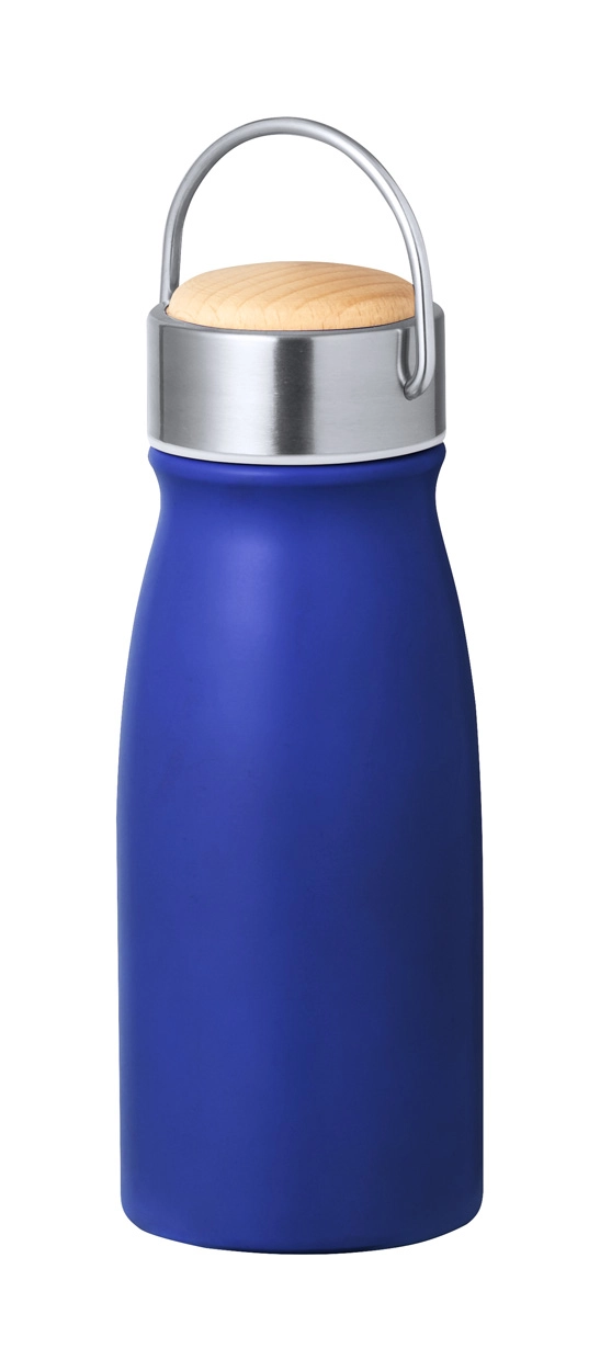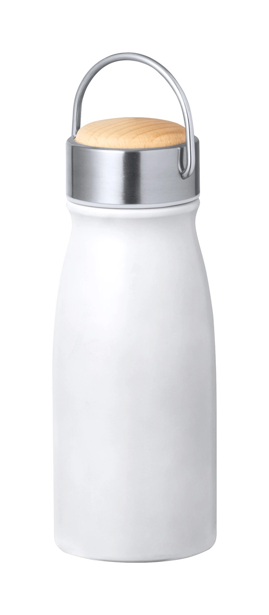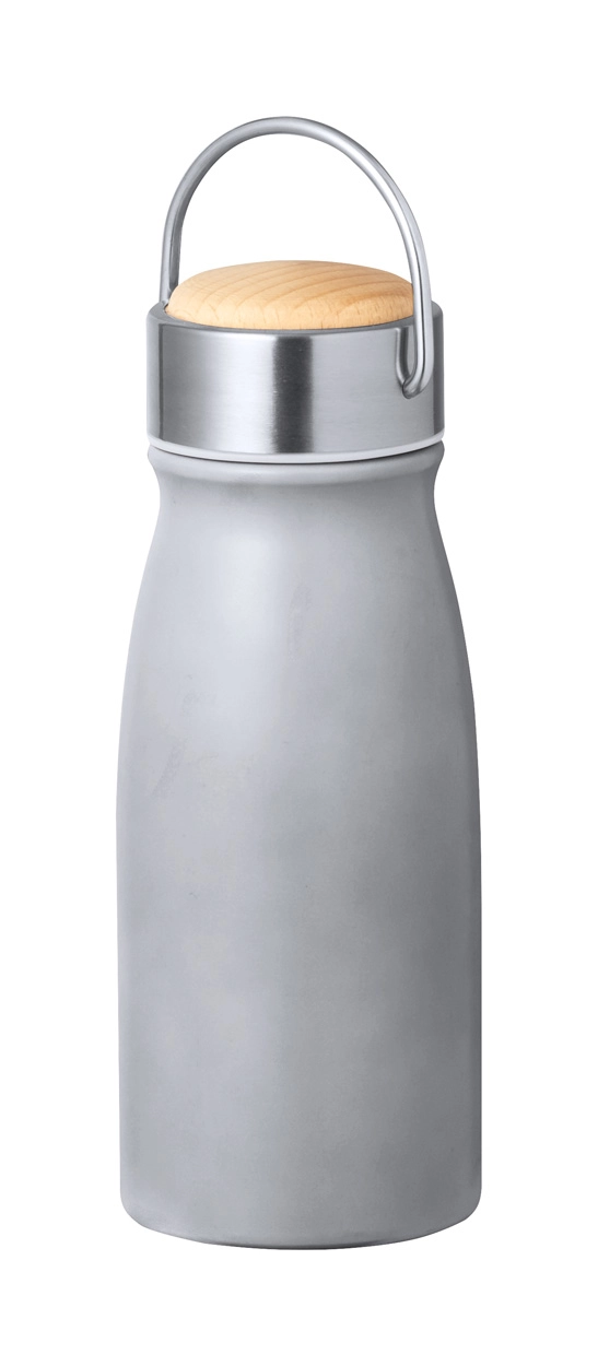 Dwuścienna, izolowana próżniowo butelka ze stali nierdzewnej pochodzącej z recyklingu z drewnianą pokrywką do przenoszenia, 350 ml.
