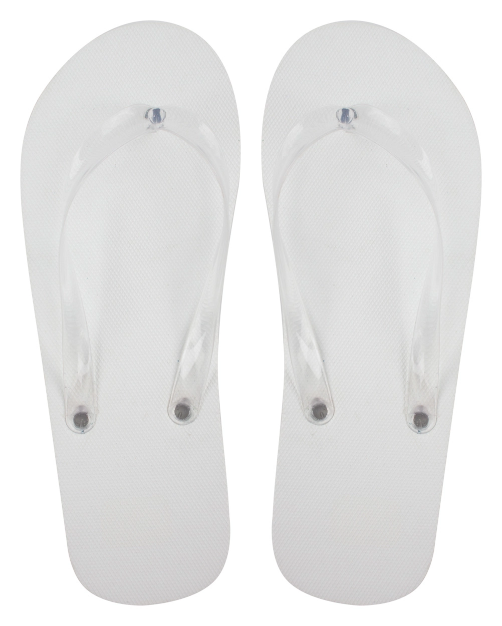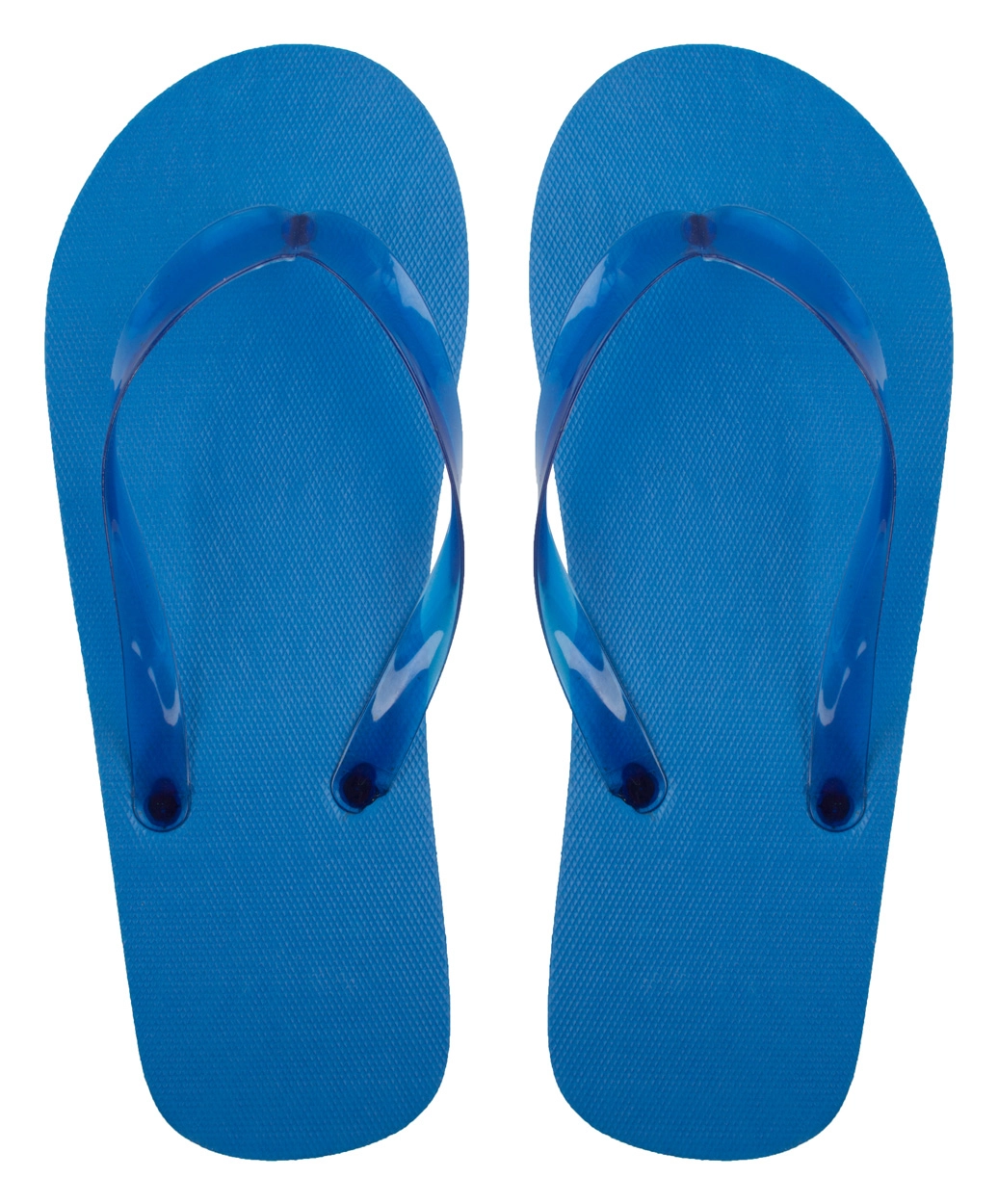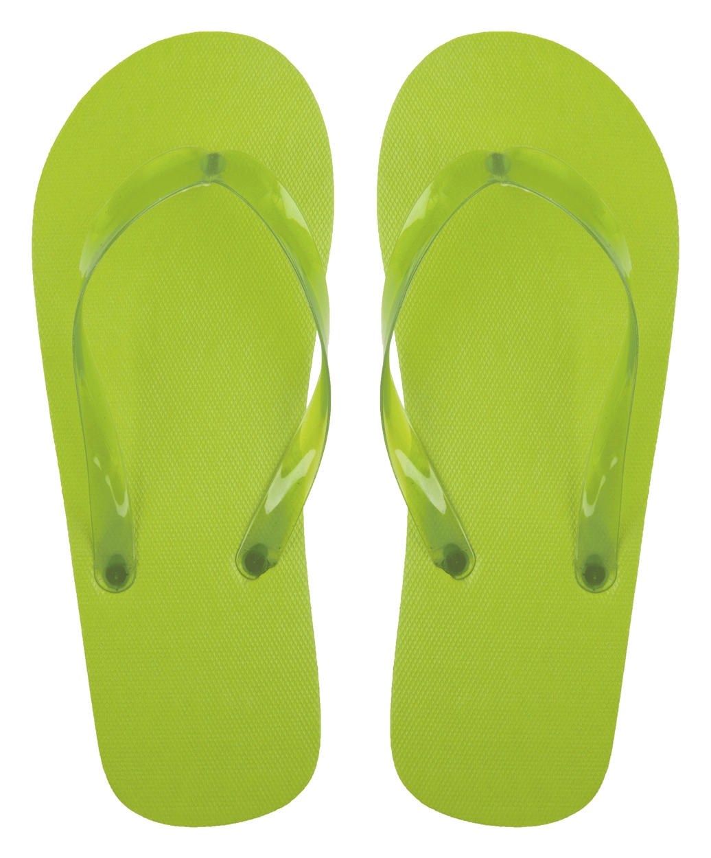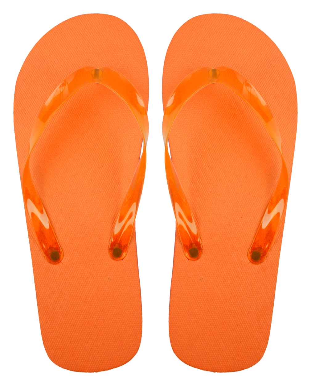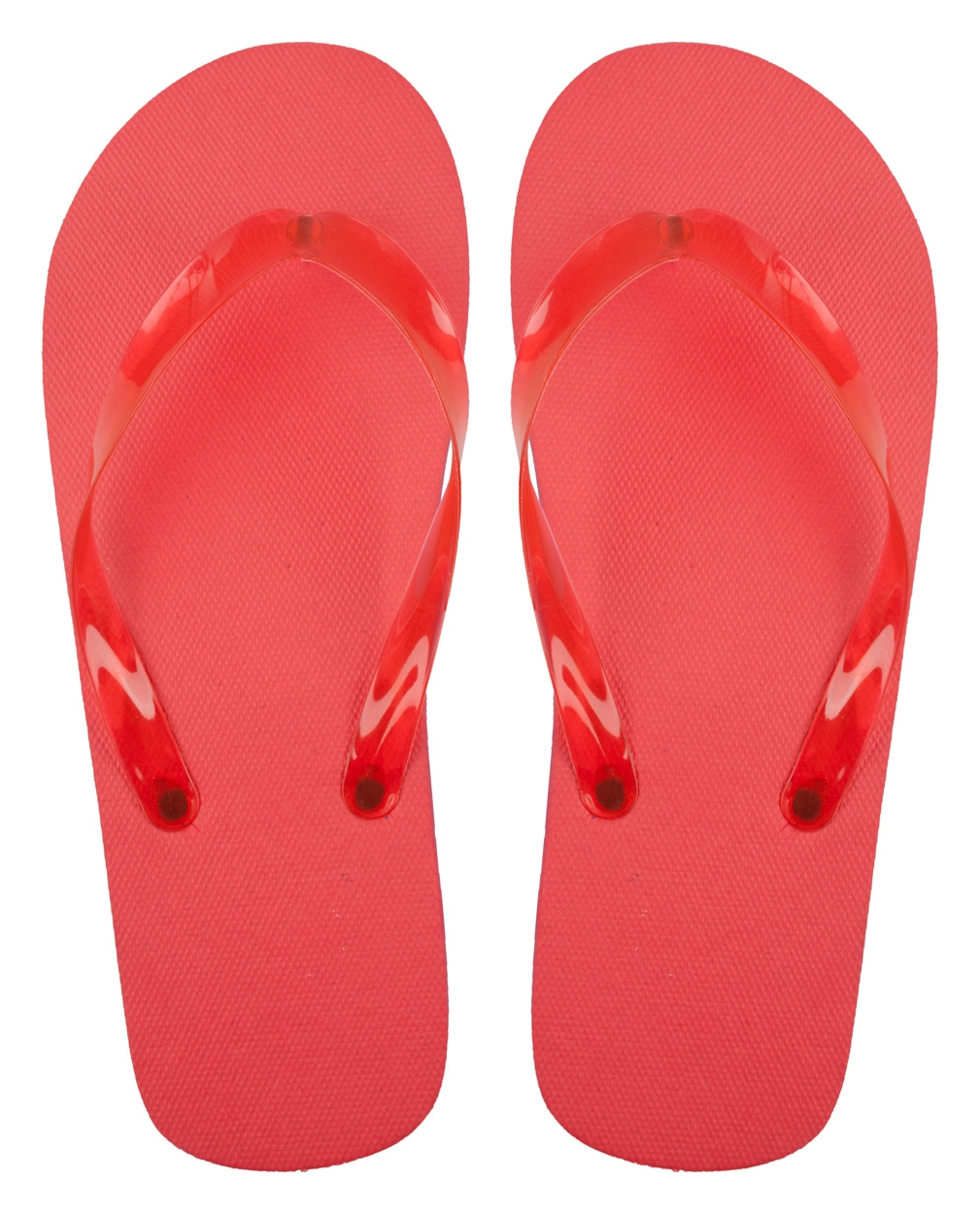 Poliestrowe klapki plażowe z przezroczystymi paskami w odpowiadającym kolorze.