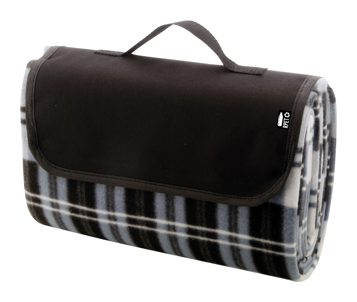 Składany koc piknikowy z polaru RPET z wodoodporną tylną stroną i uchwytem. Poliester RPET, 160 g/m?.