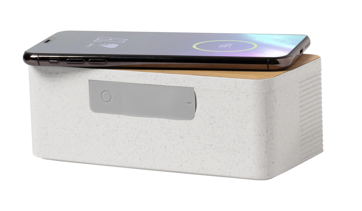 Głośnik bluetooth z szybką ładowarką indukcyjną w ekologicznej obudowie ze słomy pszenicznej i bambusa. Z funkcją rozmów głośnomówiących i wbudowanym akumulatorem. Mak. moc wyjściowa: 2000 mA. Zawiera kabel USB.