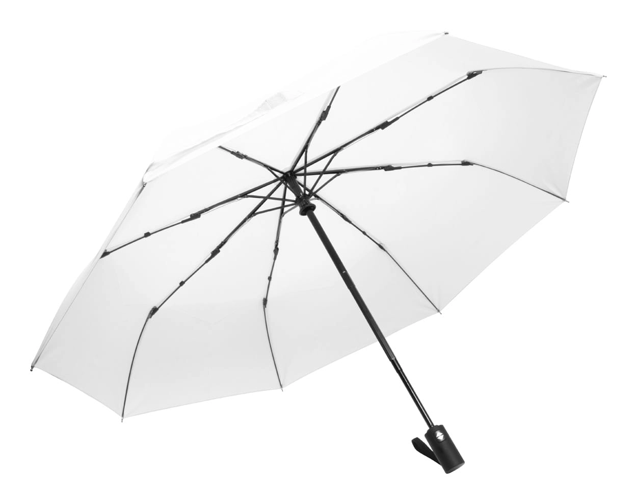 W pełni automatyczny (otwieranie/zamykanie), wiatroszczelny, składany parasol z 8 panelami w dopasowanym kolorystycznie etui. Z metalową ramą, żebrami z włókna szklanego i gumowanym uchwytem. Pongee 190T RPET. Z charakterystyczną metką RPET.