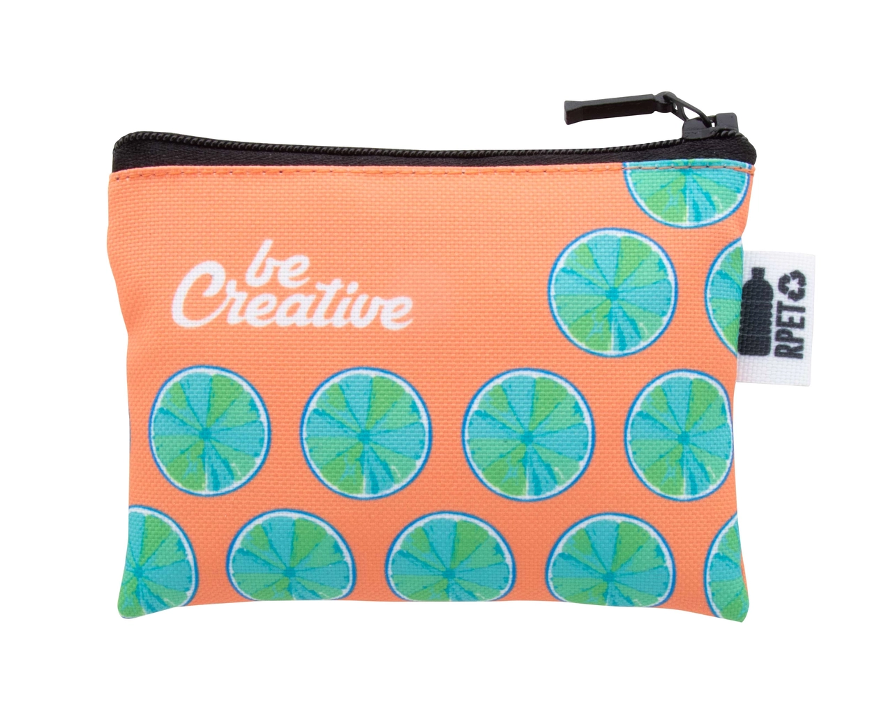 Personalizowana torebka zapinana na zamek z poliestru 600D RPET. Z charakterystyczną metką RPET i nadrukowaną na całej powierzchni grafiką sublimacyjną. Min. ilość: 50 szt.