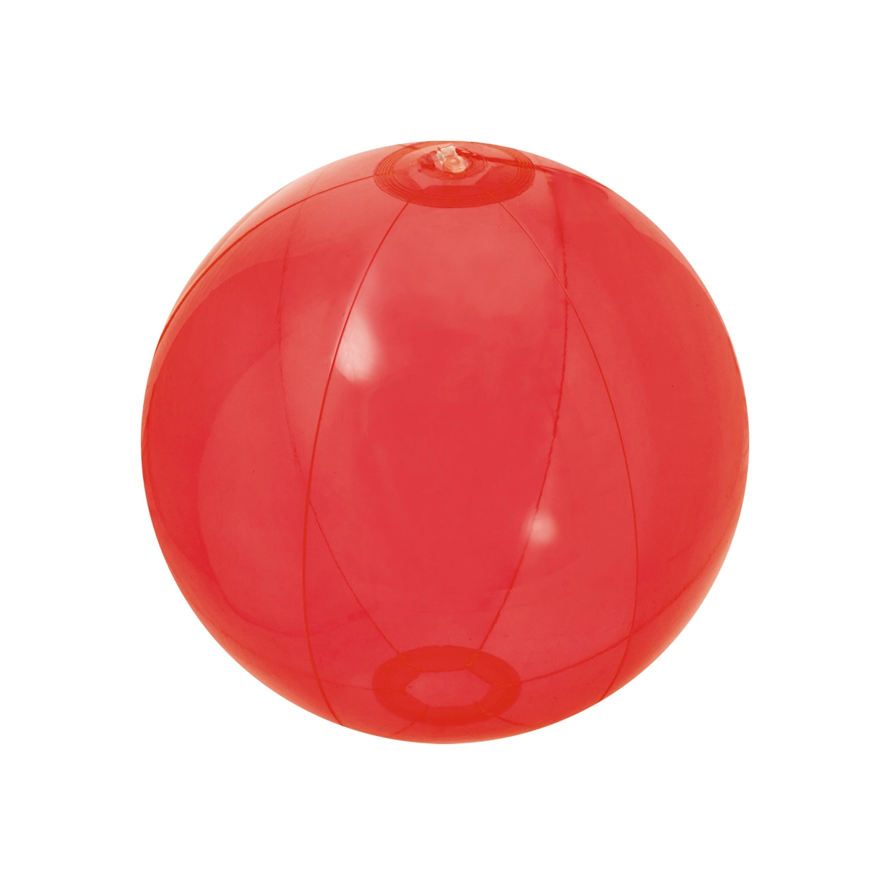 Przezroczysta piłka plażowa z 6 panelami, materiał: PVC. Rozmiar nienadmuchanej piłki: 370 mm.
