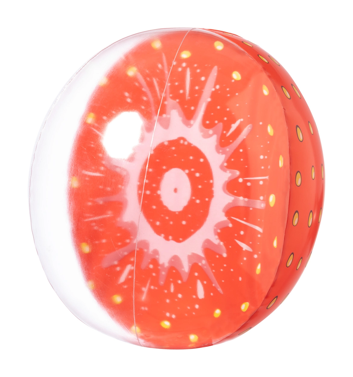 Piłka plażowa z PVC z motywami owoców. Rozmiar bez powietrza: 370 mm.