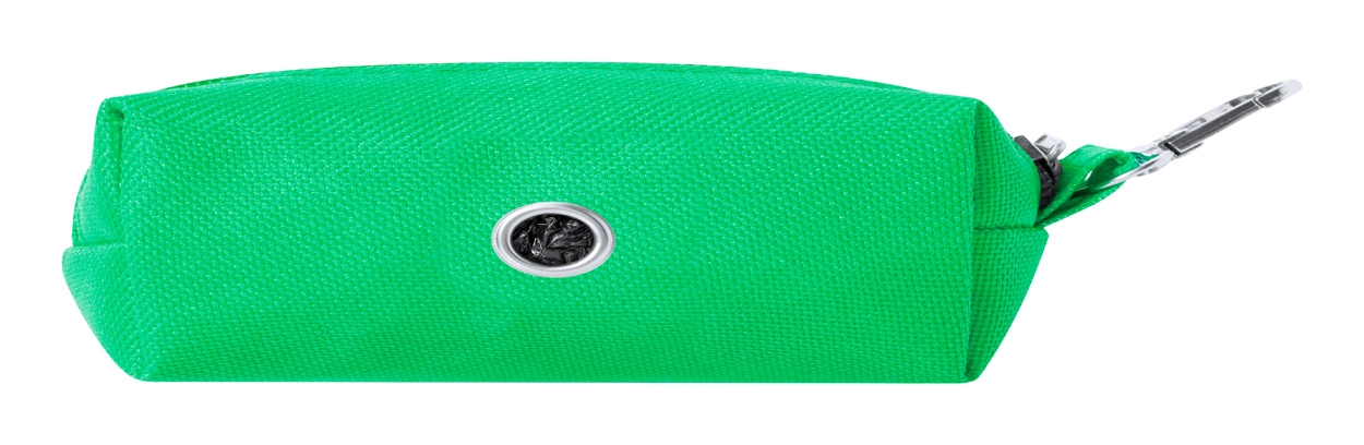 Dozownik worków na psie odchody RPET z karabińczykiem. Zawiera 15 biodegradowalnych torebek.