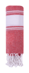 Dwukolorowy ręcznik plażowy pareo z polibawełny. Mieszanka 80% bawełny i 20% poliestru, 180 g/m?.