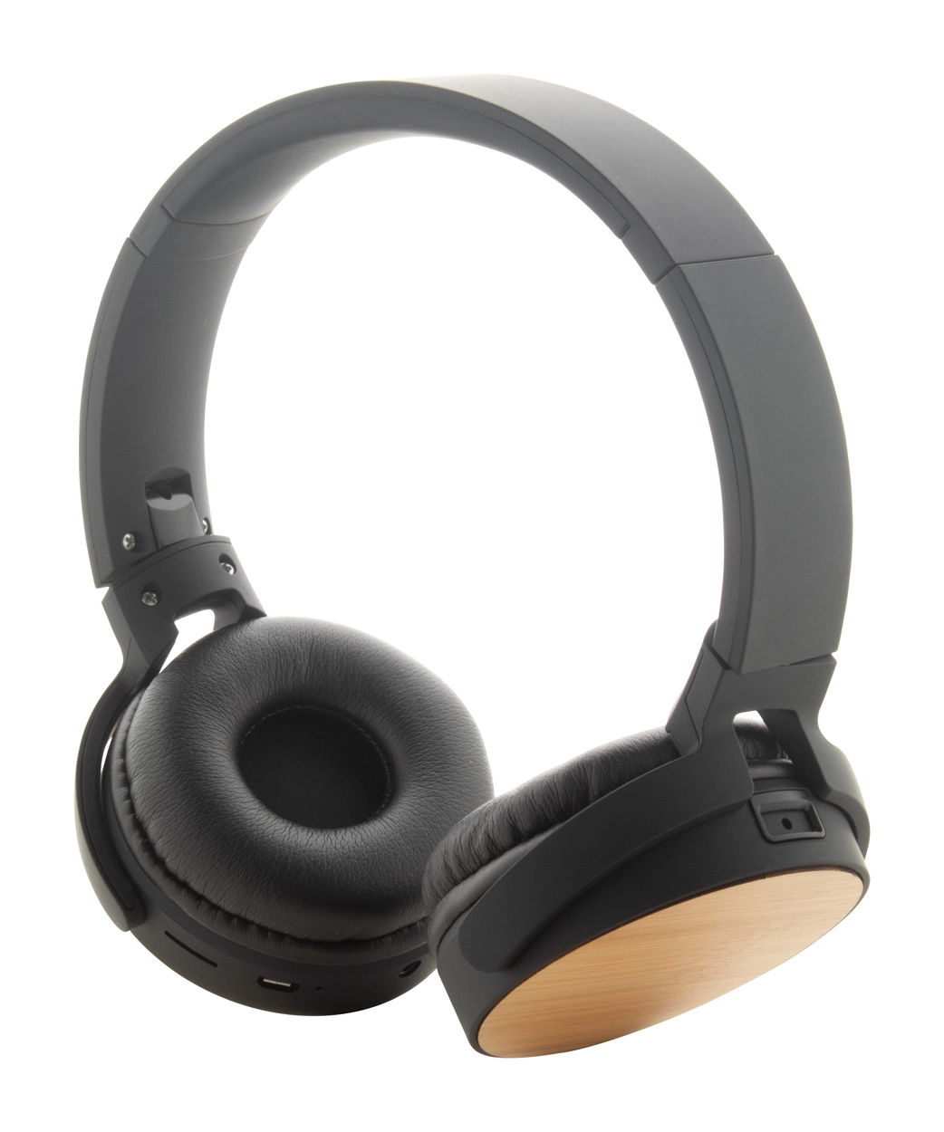 Składane słuchawki bluetooth z bambusową dekoracją i wbudowanym akumulatorem. Z funkcjami rozmów głosowych i odtwarzaniem micro SD MP3. W zestawie 3,5 mm audio Jack i kabel USB.