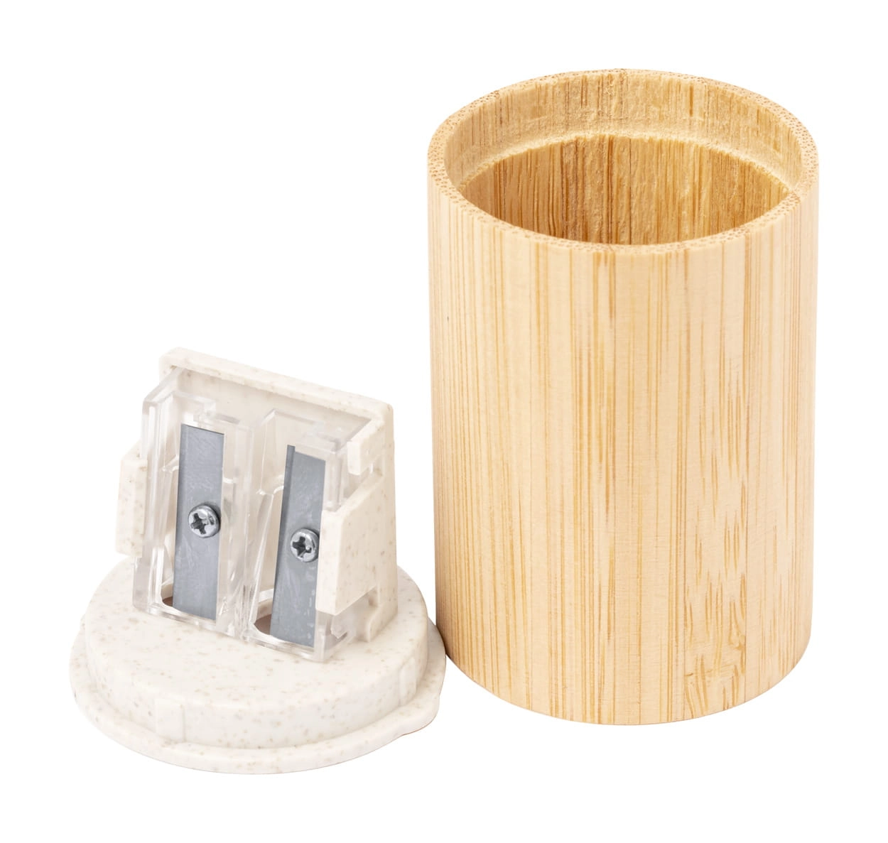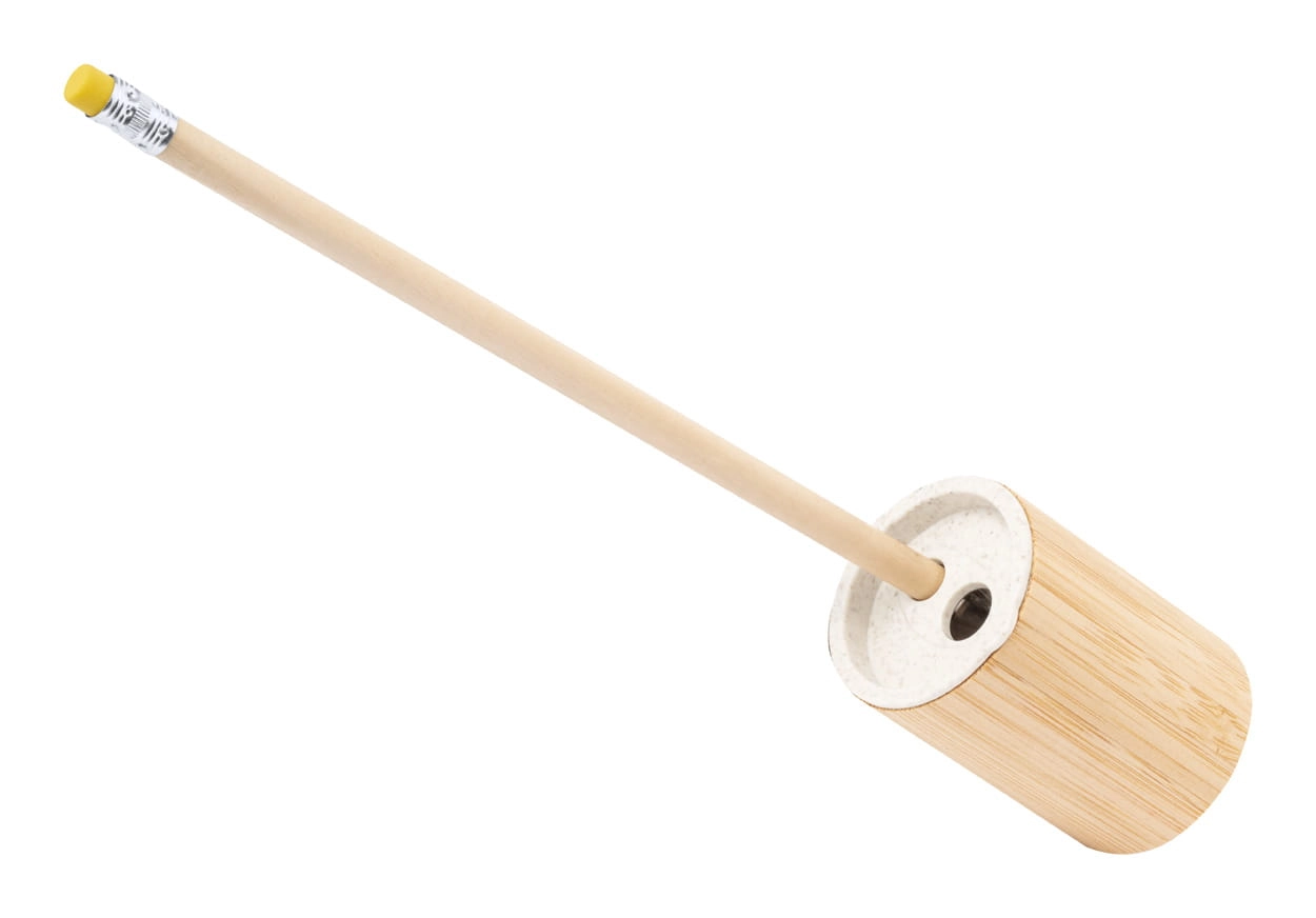 Temperówka z bambusa i ekologicznego plastiku ze słomy pszeniczne.