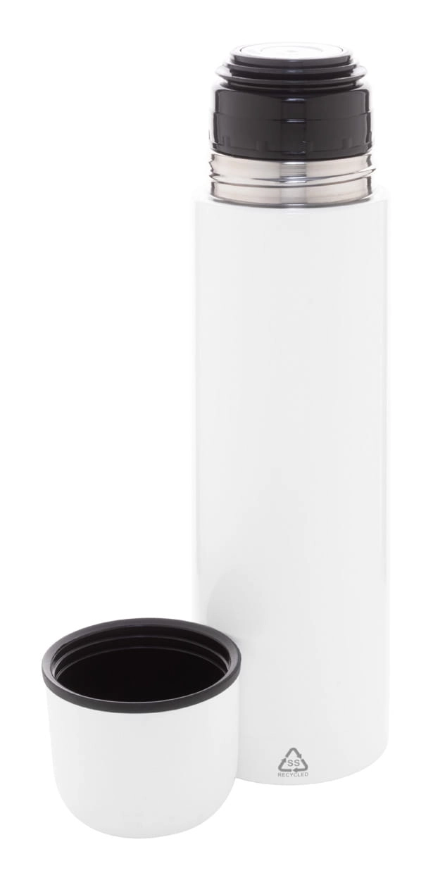 Termos próżniowy ze stali nierdzewnej z podwójnymi ściankami, pochodzący z recyklingu, o pojemności 500 ml.