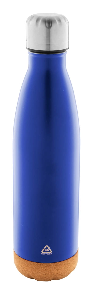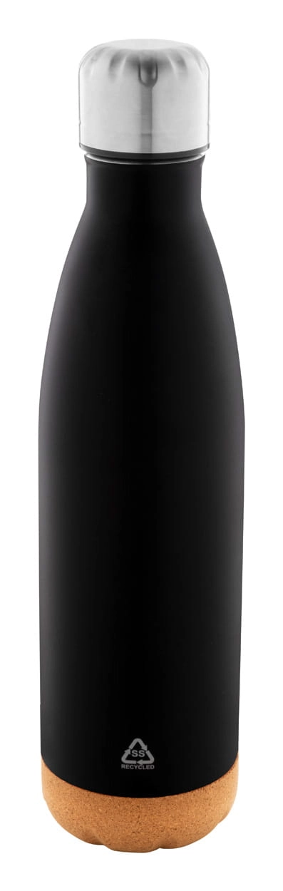 Butelka z podwójną ścianką, izolowana próżniowo ze stali nierdzewnej pochodzącej z recyklingu, z podstawą z naturalnego korka. 500 ml