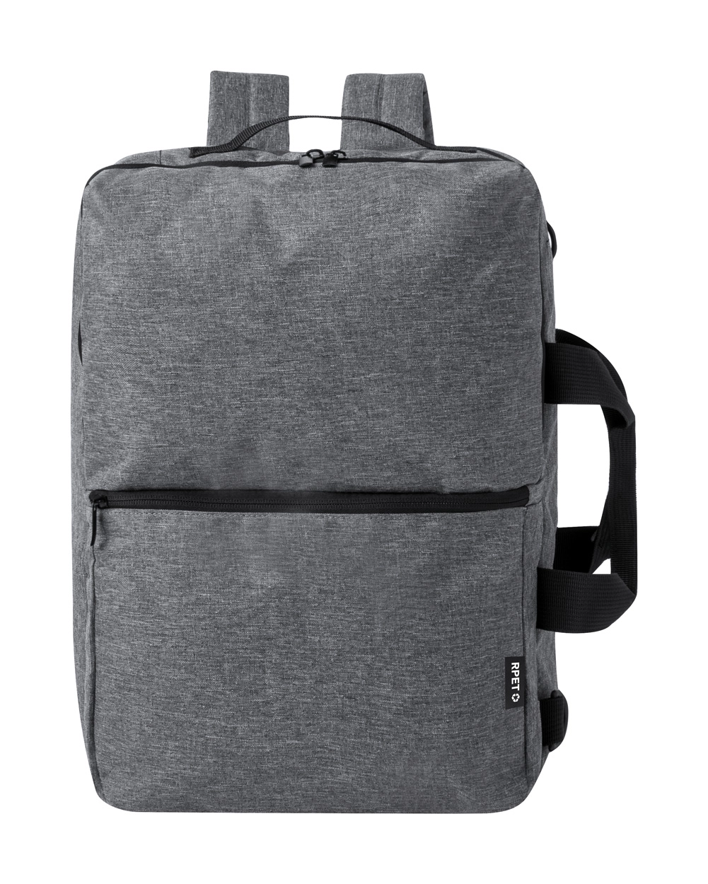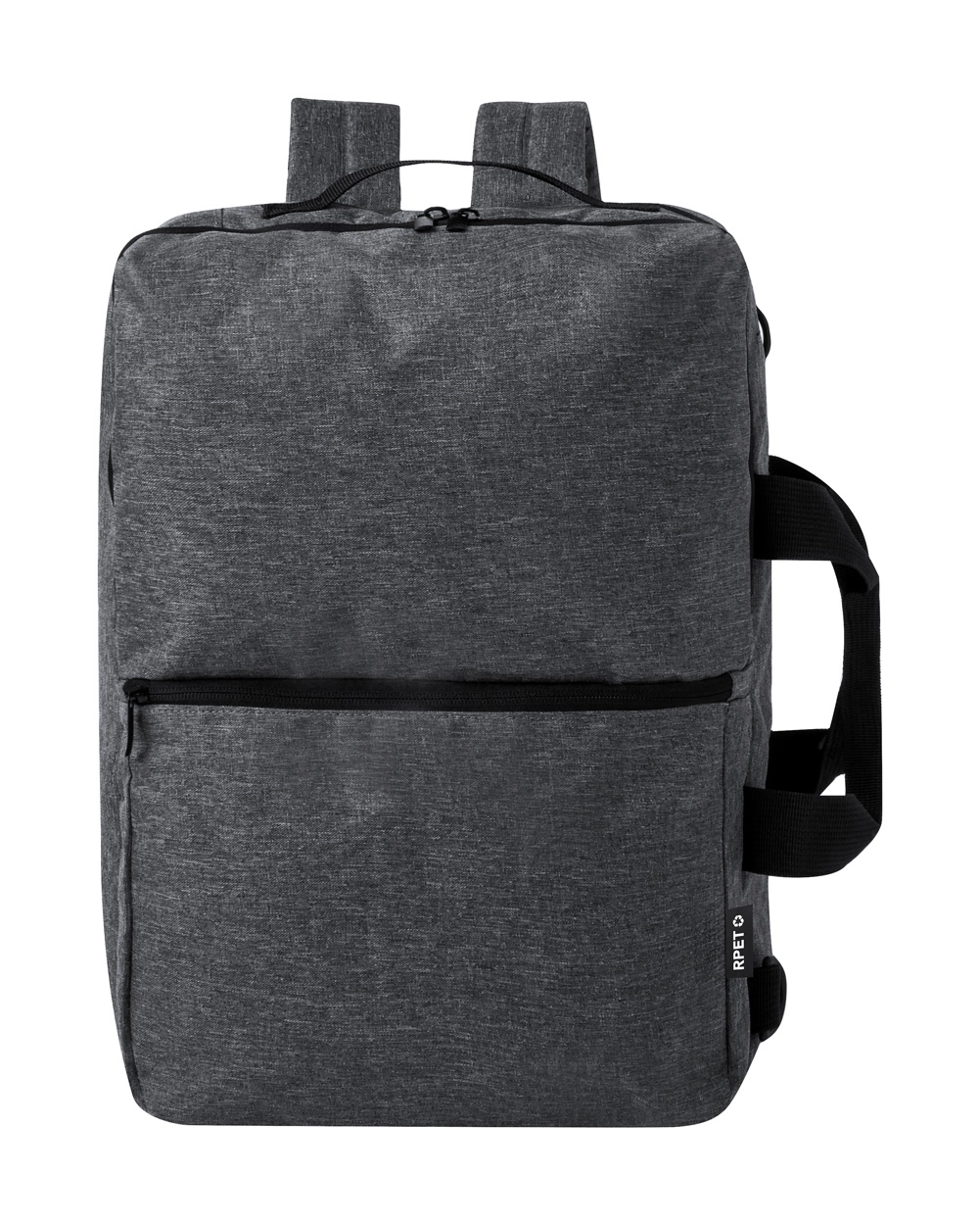 Dwufunkcyjny plecak i torba na dokumenty RPET z przegródkami zapinanymi na zamek, wyściełaną przegrodą na laptopa (15"), wyściełanymi plecami i paskami na ramiona. Poliester 600D RPET z charakterystyczną metką RPET.