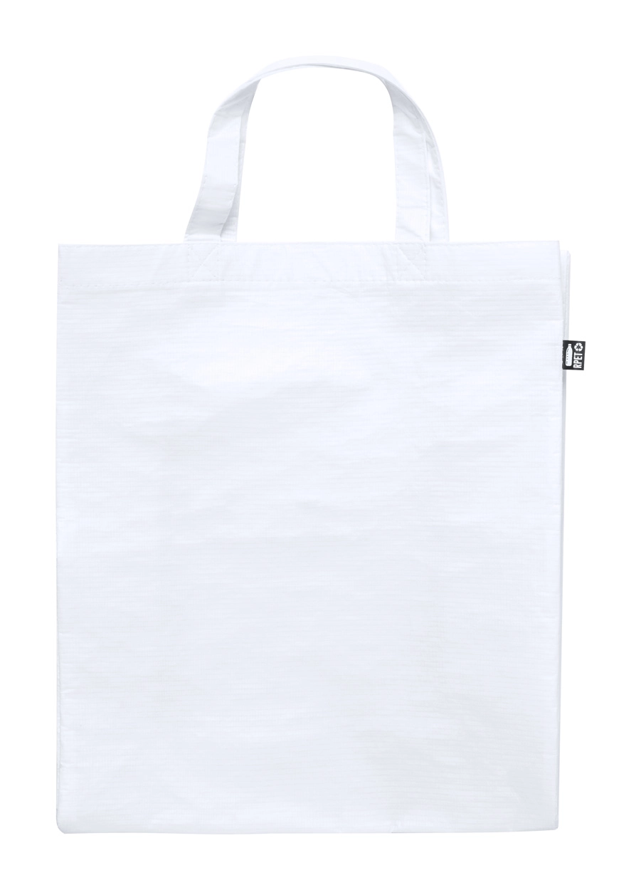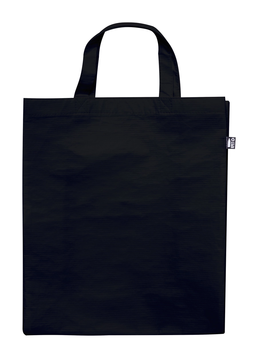 Torba na zakupy z laminowanego poliestru RPET z dnem i bokami, z krótkimi uchwytami, 110 g/m². Z charakterystyczną metką RPET.