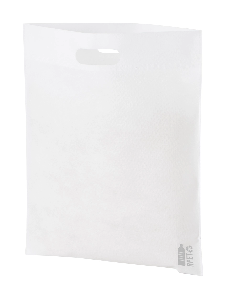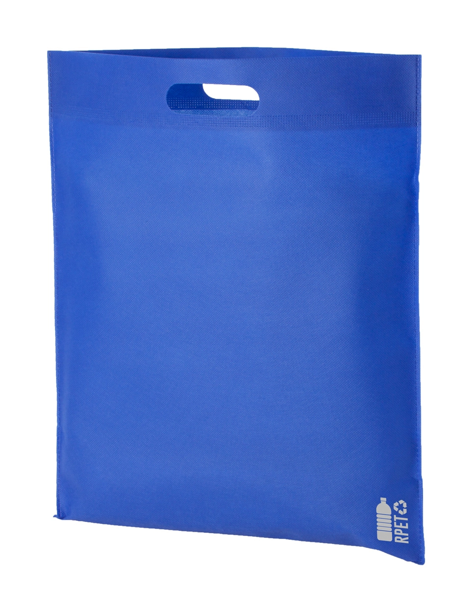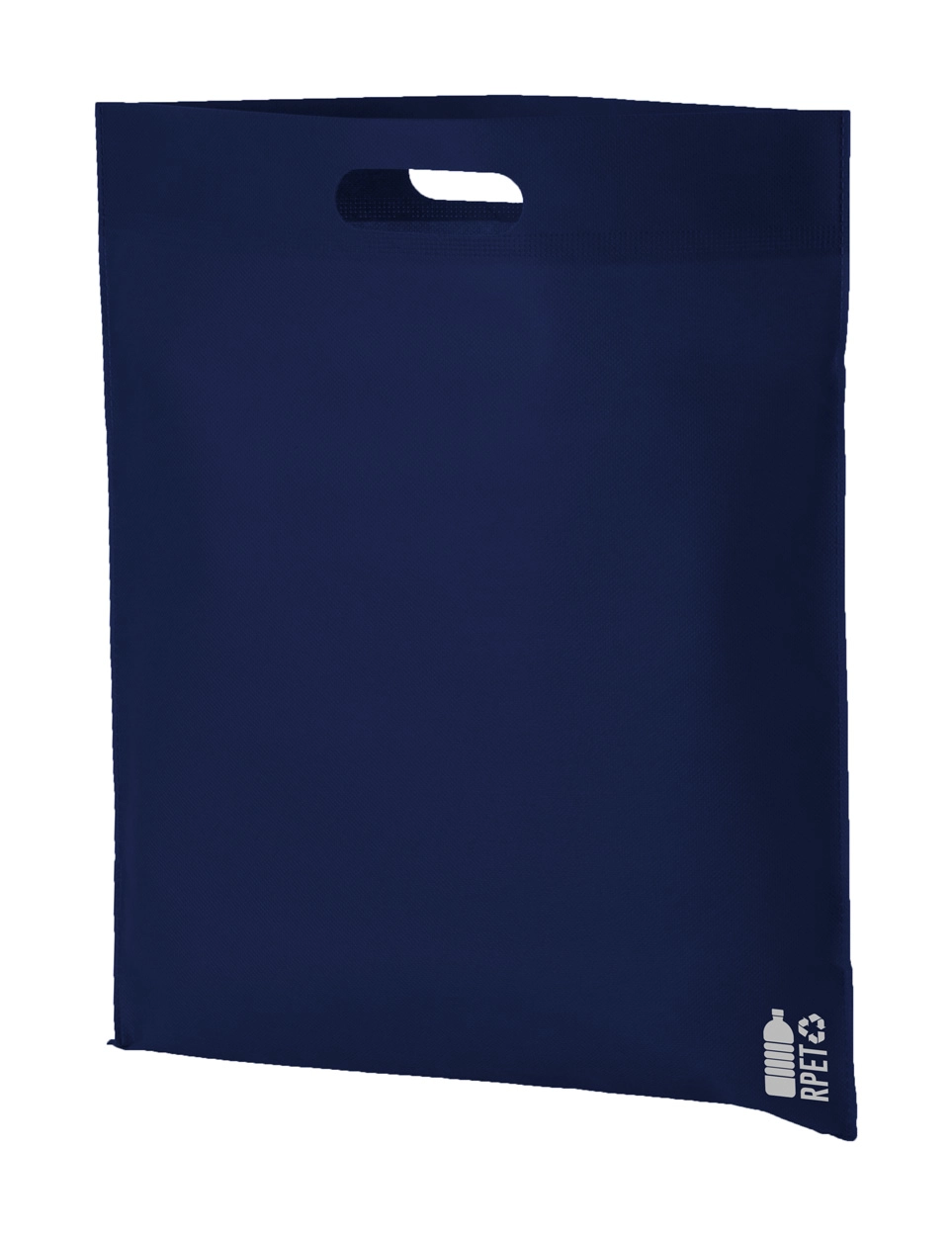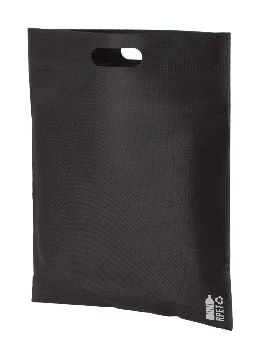 Torba na zakupy z włókniny RPET z wyciętymi uchwytami, 70 g/m?. Z charakterystycznym metką RPET.