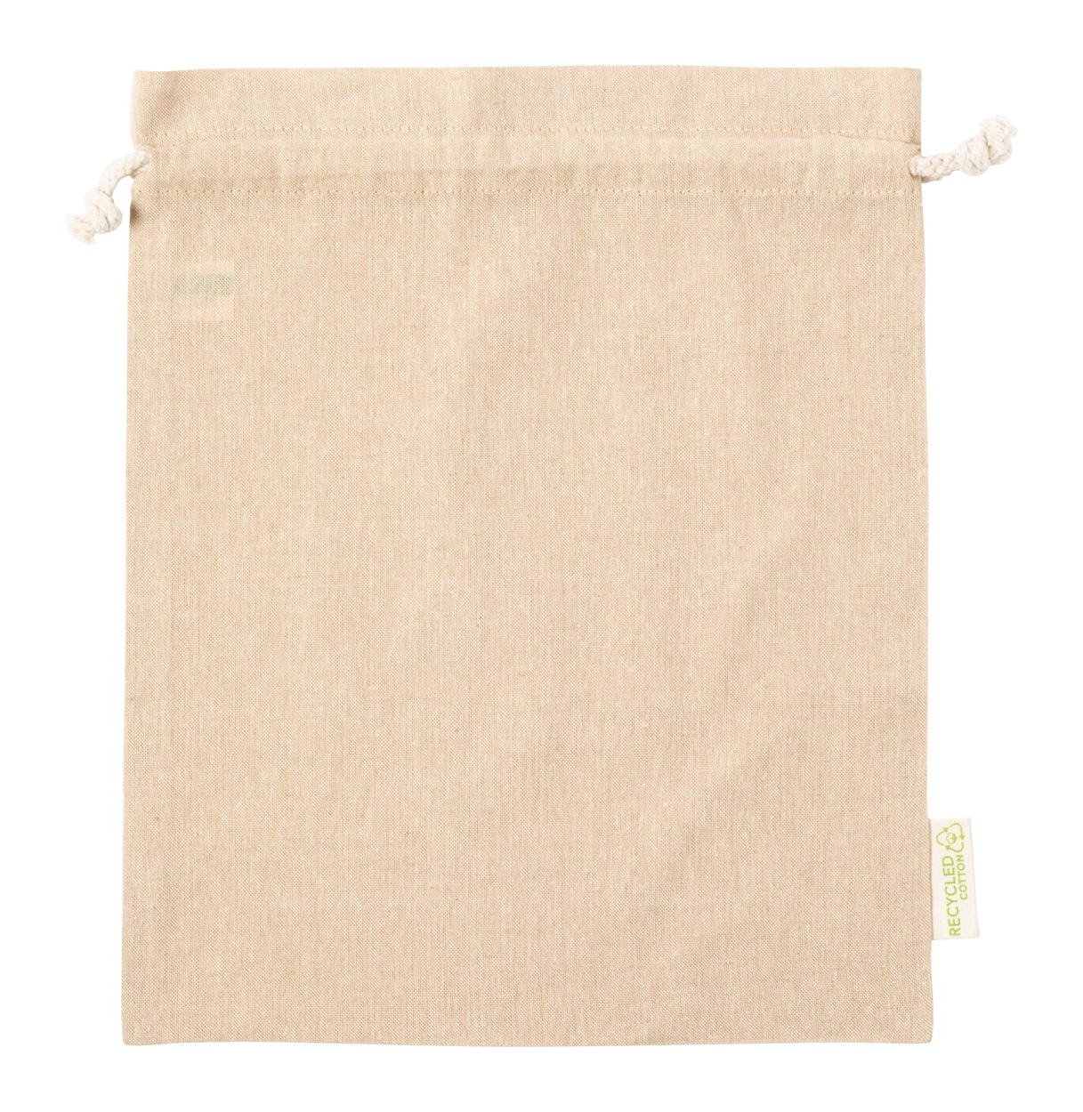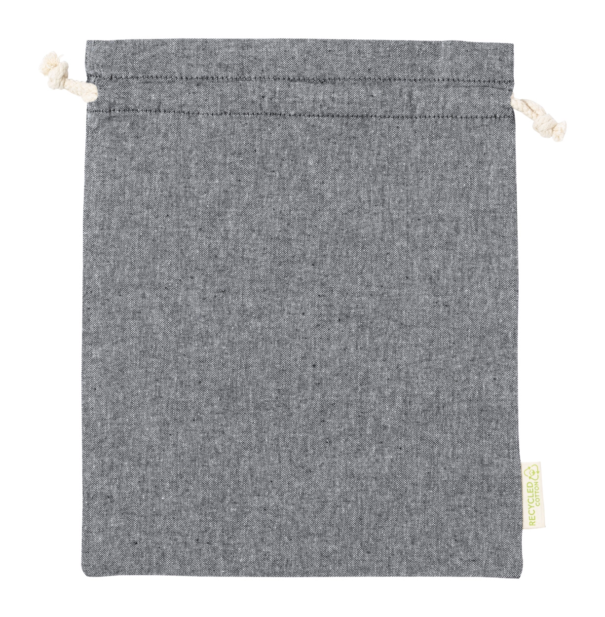 Torba wielokrotnego użytku z bawełny z recyklingu z zapięciem na sznurek. 100% bawełna z recyklingu, 120 g/m².
