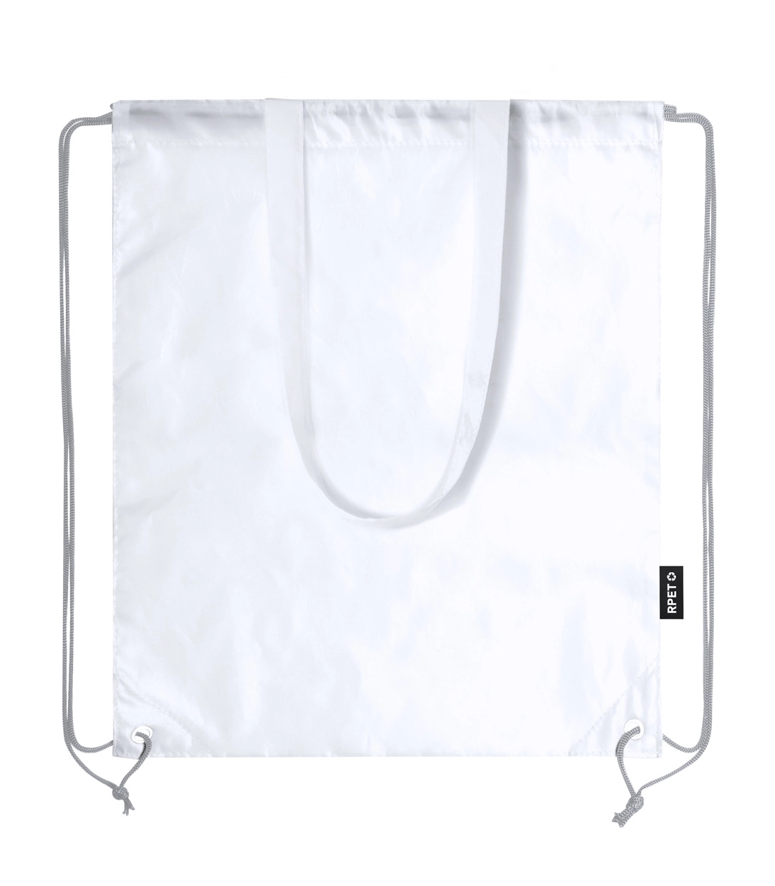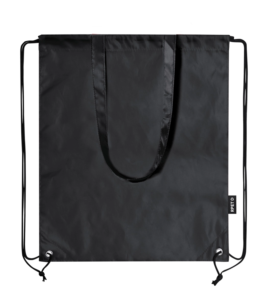 Worek ze sznurkiem z poliestru RPET, z długim uchwytem. Może służyć również jako torba na zakupy. Z charakterystyczną metką RPET.