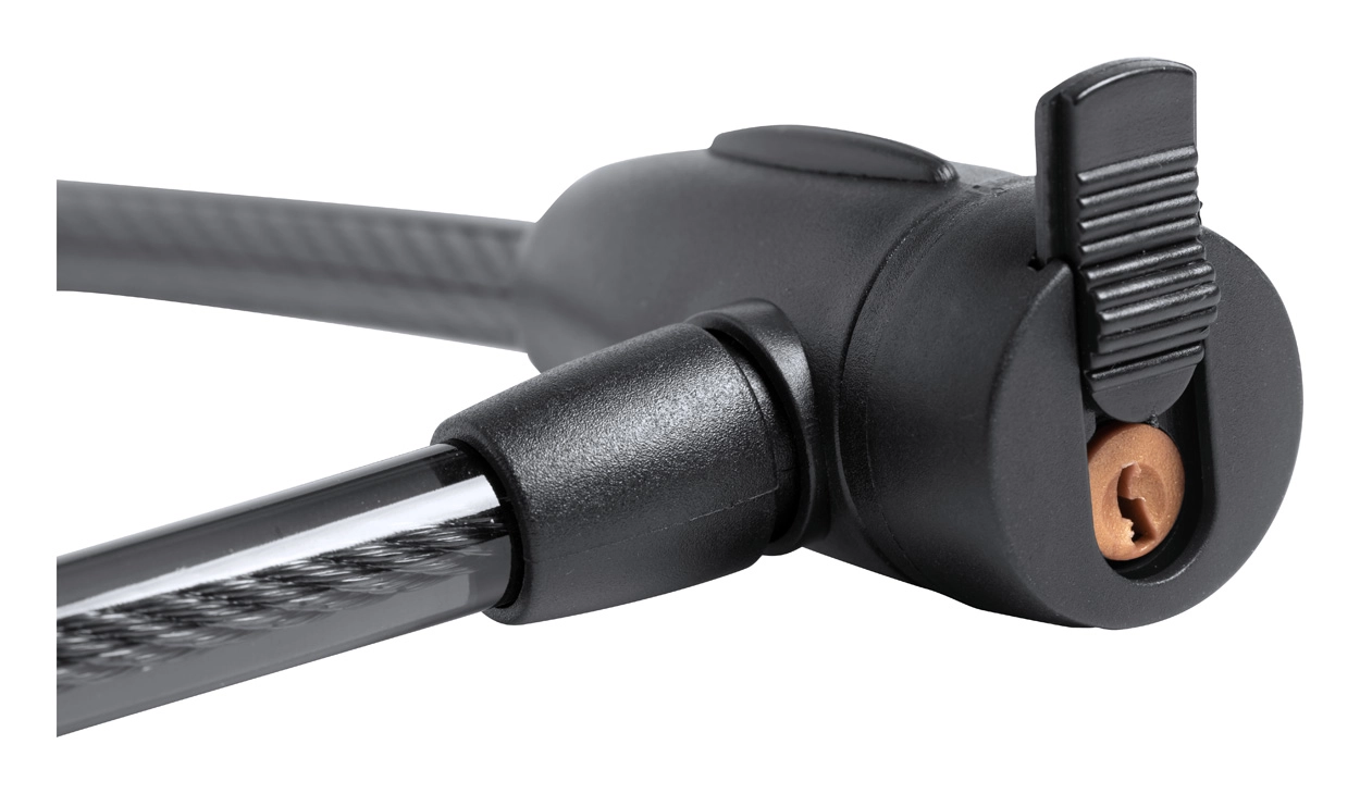 Zapięcie do roweru ze stali w otulinie PVC. W zestawie z 2 kluczami.